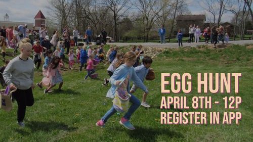 We'll start at noon with lunch. Provided weather is kind to us, we will be outside the FLC. Kids 0-5th Grade are invited to hunt eggs. Register to join the hunt below.